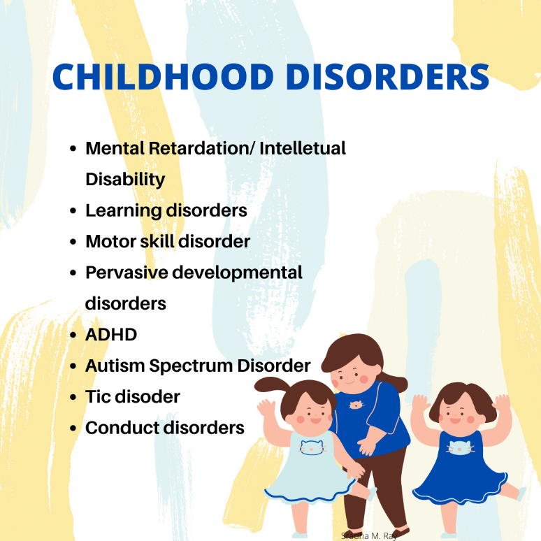 Childhood is the developmental phase of all individuals and it requires the utmost care and attention for becoming a strong foundation for the upcoming years ahead. However, in case of some children childhood tends to become difficult due to many reasons, mental health conditions are amongst one of them. Mental disorders among children can affect and cause changes in the manner children learn, behave or regulate their emotions, which can lead to distress and problems getting through the day. Some of the disorders include anxiety, depression, oppositional defiant disorder, conduct disorder, attention-deficit/hyperactivity disorder, obsessive compulsive disorder, post-traumatic stress disorder (PTSD). The signs can be seen as early as 2 years of age in some cases and hence its recommended that screening or psychometric assessments are conducted when there is something that is concerning or something that is different from the way other children of the similar ages do such as in activities of play, learning, speaking as well as acting or behavior along with the ways children handle their emotions. However, childhood conditions are treatable with appropriate psychotherapy or counselling and medications when required. Parents and Teachers if available can be included in the therapy process for a better prognosis.