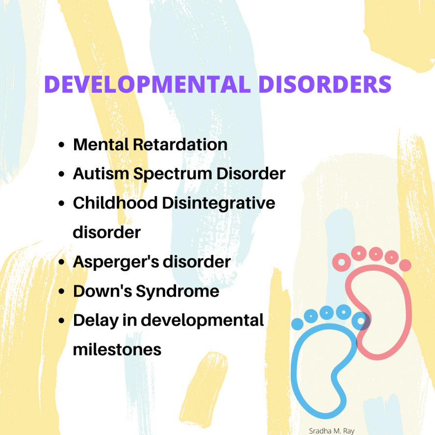 Developmental disorders are those conditions due to an impairment in physical, learning, language or behavior areas. These conditions generally begin in the developmental period and may impact the DALY throughout the person’s lifetime. Developmental disabilities can be caused due to many reasons some of them being, pre-birth or during birth injury, infection or can be genetic too. Certain common conditions are cerebral palsy, Autism Spectrum Disorder, Fetal Alcohol Syndrome, Fragile X, Intellectual disability, Language and Speech Disorders, Learning Disorders, Muscular Dystrophy, Tourette Syndrome, and so on. Many of these disorders can co-occur with certain behavioral difficulties like temper tantrums, anger outbursts, use of abusive language, skin picking, nail biting, hitting others/self, and so on. The course of treatment for developmental disorders is first psychometric assessments to identify and figure the severity of symptoms out. Some of these disorders are even the ones which are certified enough for disability certification and allowances. In case of behavioral difficulties, a combination of pharmacotherapy if required along with psychological training, parent management training and social skills along with occupational training are recommended.